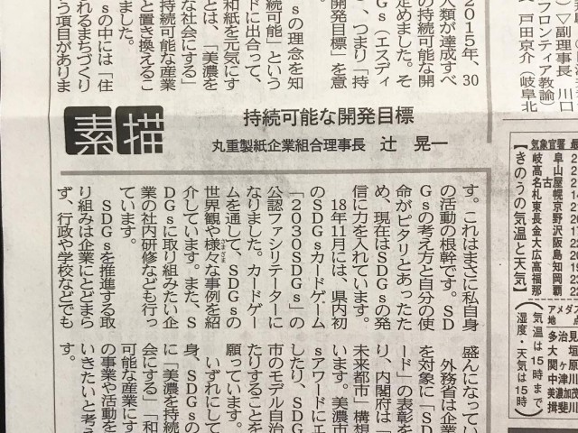 先週3月6日(水)から8週にわたり岐阜新聞のコラム「素描」の水曜日…
