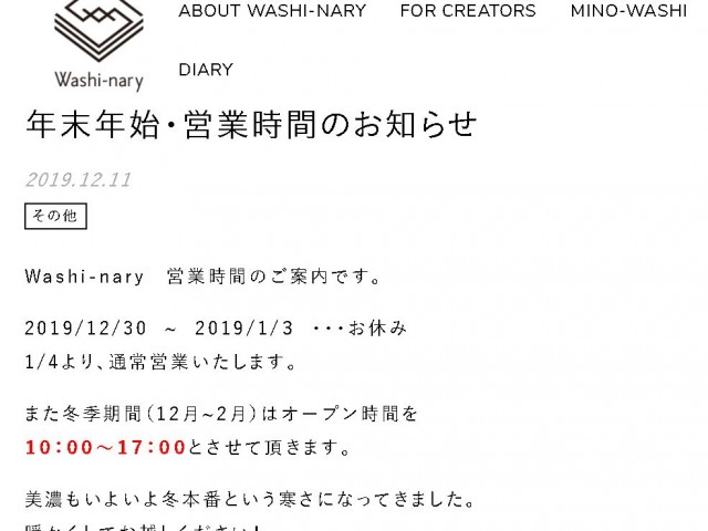 丸重製紙が運営する和紙専門店Washi-naryの営業時間についてお知…
