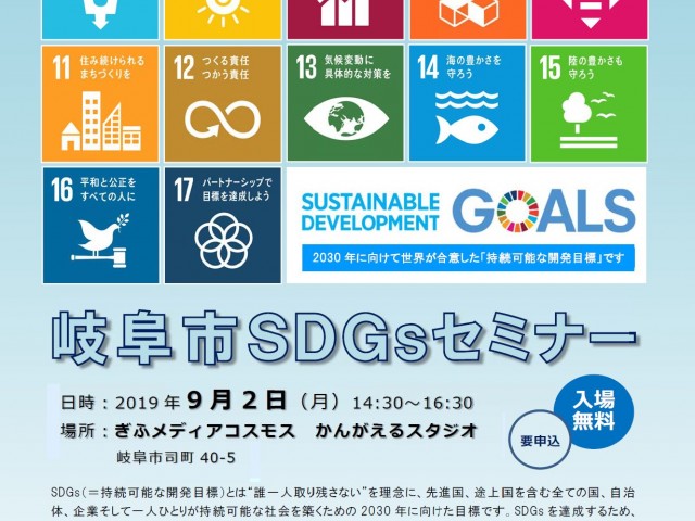 9月2日(月)に岐阜市が開催する「岐阜市SDGsセミナー」に先進取組…